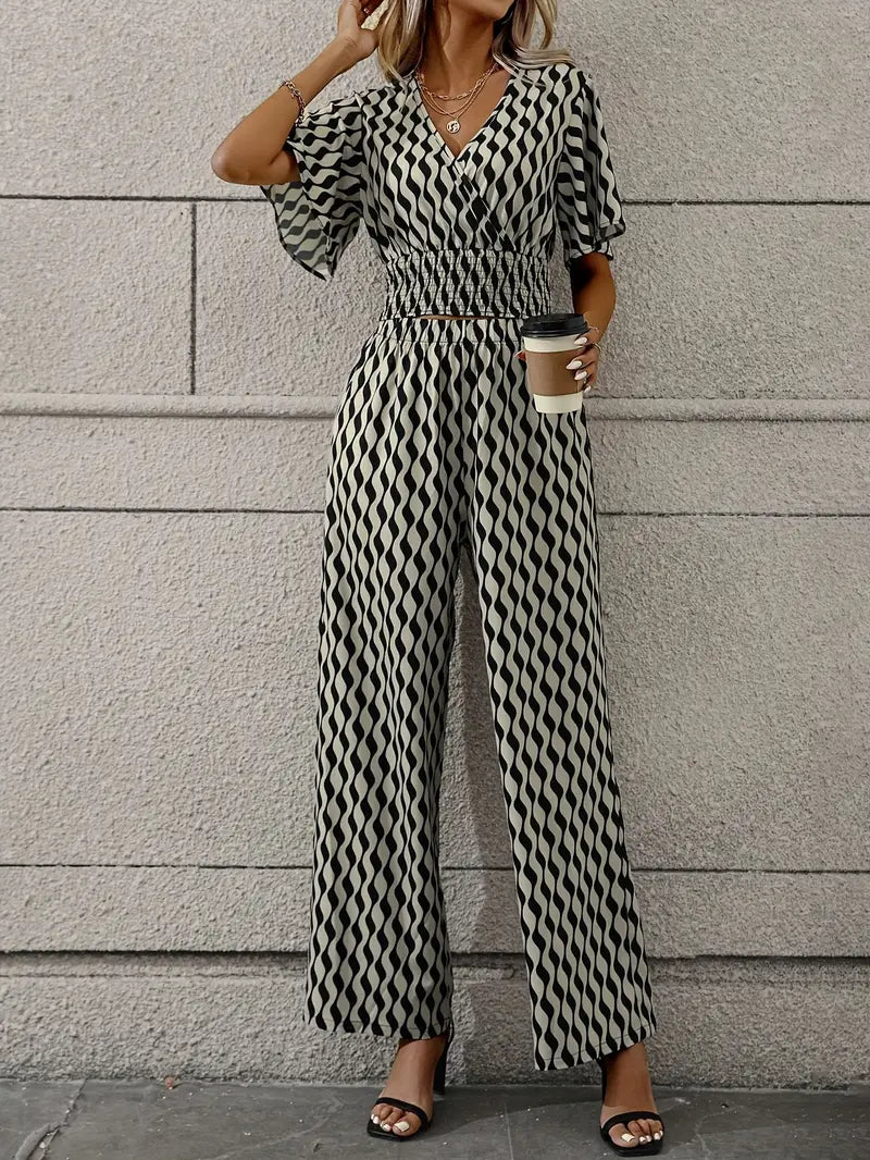 Eleganckie garnitury ze spodniami z nadrukiem na całej powierzchni