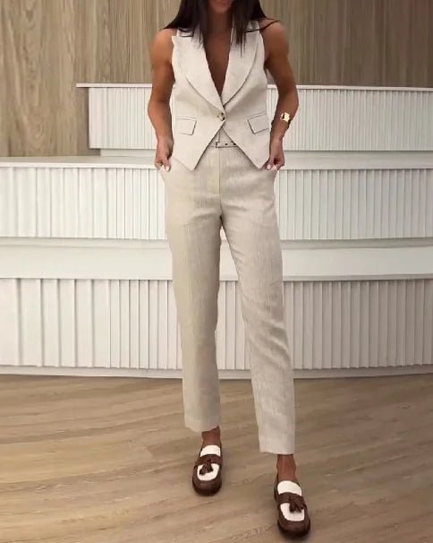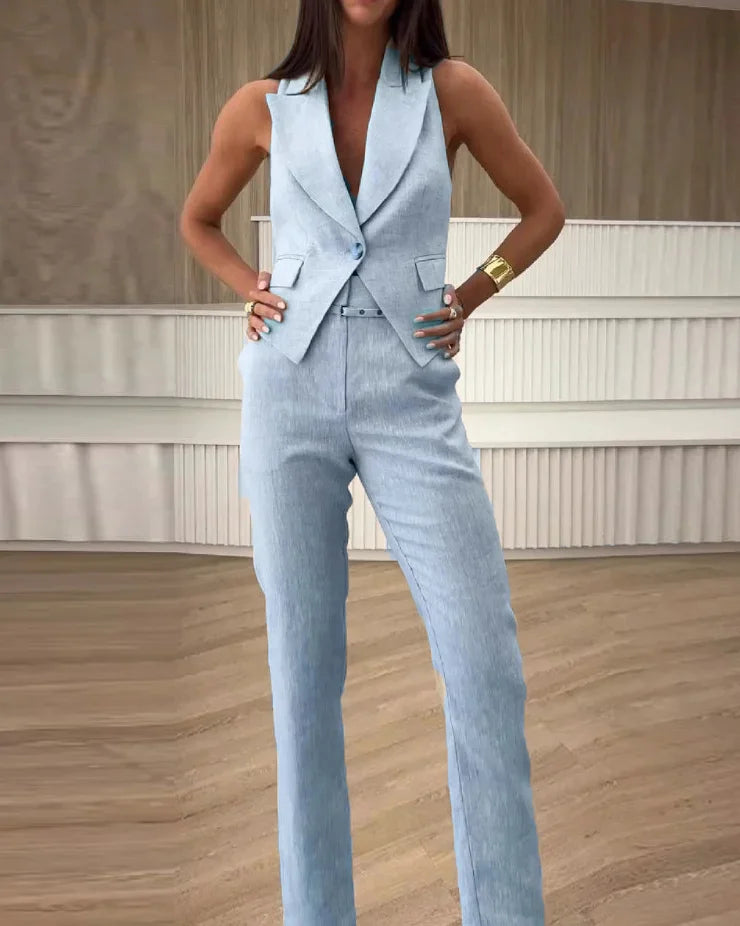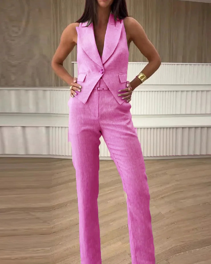 Ten wykwintny dwuczęściowy garnitur został zaprojektowany wyłącznie z myślą o kobietach ceniących swobodny styl. Wykonany z wytrzymałego poliestru, zapewnia nie tylko fantastyczny wygląd, ale także trwałą jakość. Zachwyć się designem bez kołnierzyka i rękawów, a Twoja grupa będzie obiektem zazdrości.