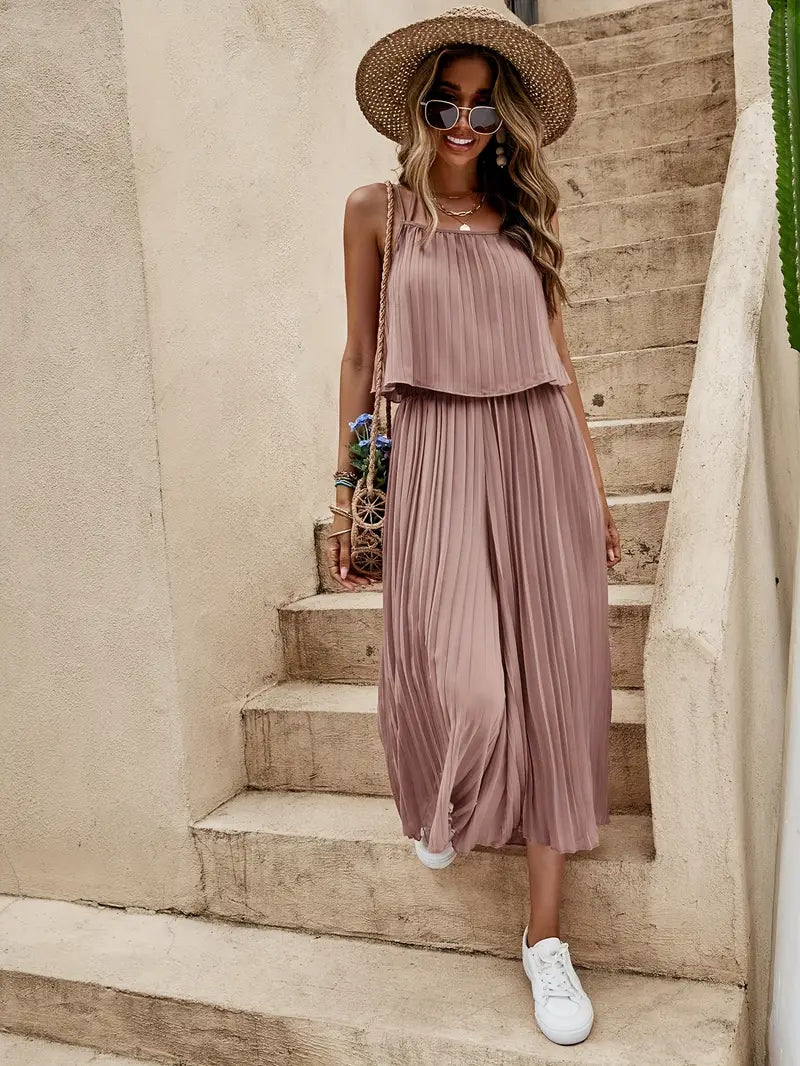 Przedstawiamy nasze eleganckie, plisowane spodnie, ponadczasowy dodatek do Twojej letniej garderoby. Ten strój, wykonany z wysokiej jakości materiałów, emanuje wyrafinowaniem i stylem. Dostępny w klasycznym kolorze, plisowany krój dodaje eleganckiego akcentu każdemu stylowi. Wykonany z lekkiego i oddychającego materiału, spodnie garniturowe zapewniają wygodę i swobodę ruchów, idealne na ciepłe letnie dni. Niezależnie od tego, czy wybierasz się na przyjęcie w ogrodzie, czy na oficjalną okazję, nasz elegancki, solidnie plisowany kombinezon zapewni Ci szyk i wygodę przez cały sezon.