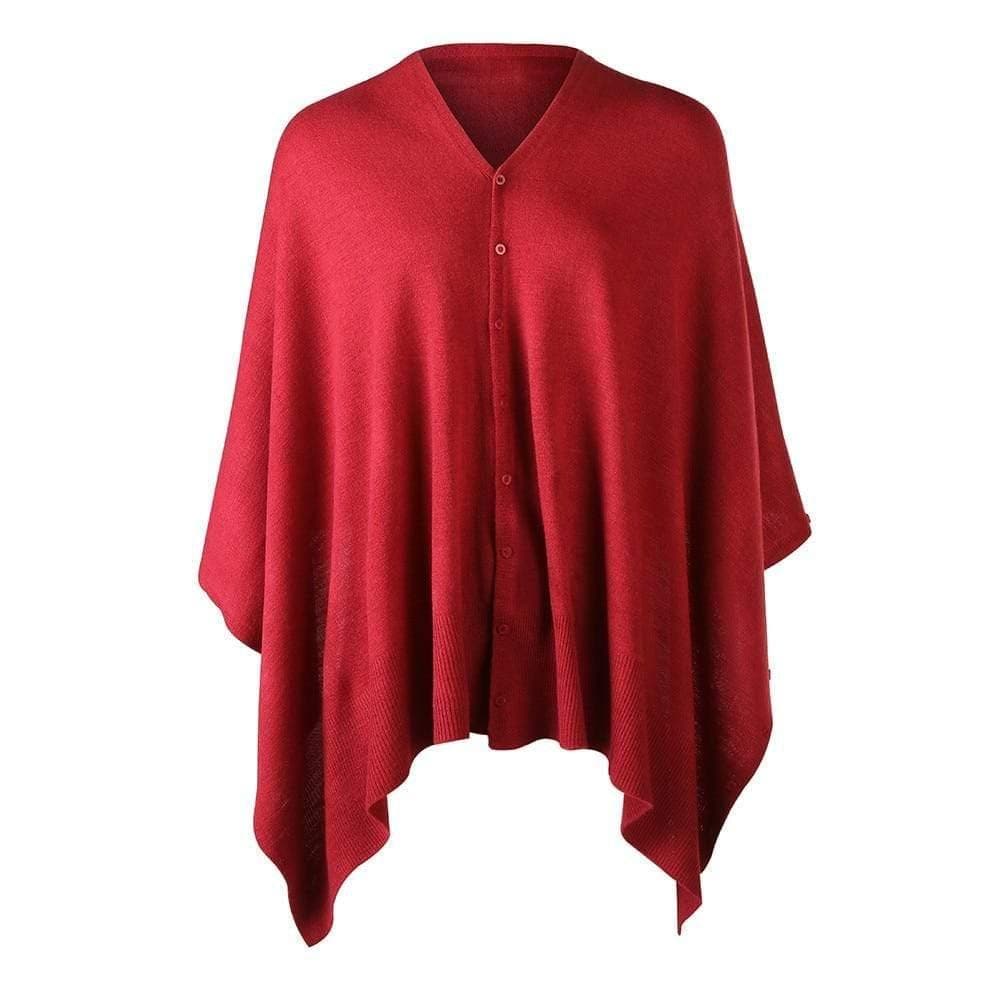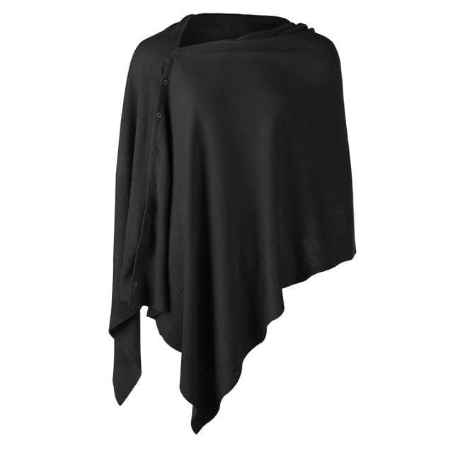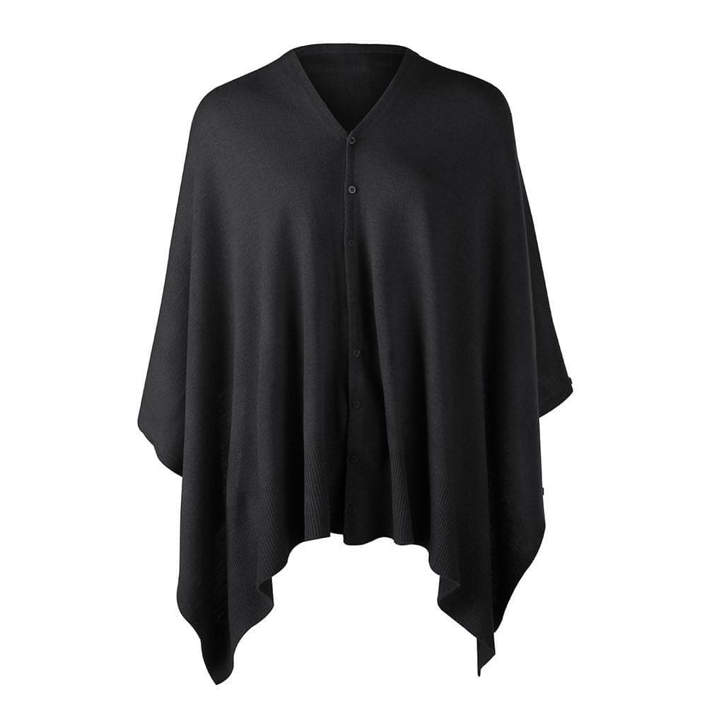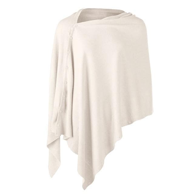 Swetrowe ponczo z asymetrycznym wykończeniem oraz zapięciem na guziki. Po jednej stronie znajduje się zapięcie na niewielkie guziki, sięgające od dekoltu aż do dołu. Z boku ponczo ma asymetryczne wykończenie, co świetnie wysmukla sylwetkę. Z tyłu z kolei jest wykończone prosto. Asymetryczny Sweter Ponczo dostępny w wielu ciekawych odcieniach: bieli, mięcie, szarości, czerwieni, beżu, delikatnym różu i graficie.