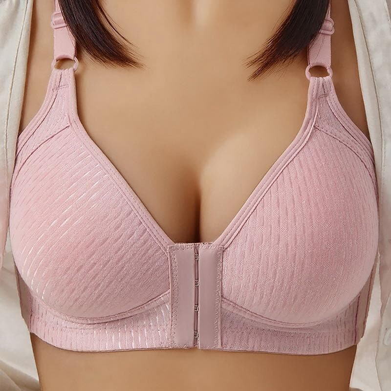 Ten biustonosz zapinany z przodu to idealne rozwiązanie dla kobiet ceniących wygodę i doskonałe podtrzymanie biustu. Wykonany z wysokiej jakości elastycznego materiału, zapewnia komfort przez cały dzień, a usztywniane miseczki subtelnie modelują kształt piersi. Regulowane ramiączka oraz innowacyjne zapięcie z przodu ułatwiają zakładanie i zdejmowanie biustonosza, co czyni go doskonałym wyborem zarówno na co dzień, jak i dla osób o ograniczonej mobilności. Bez fiszbin, dzięki czemu zapewnia naturalny wygląd i pełną swobodę ruchów.