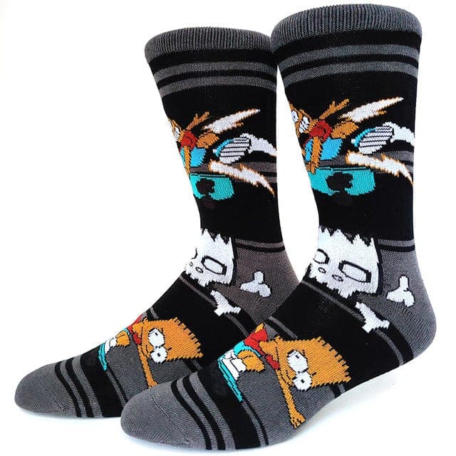 Bawełniane skarpety z motywem kreskówek to propozycja dla miłośników bajek. Jesteś fanem Simpsonów? Idealnie! Bawełniane skarpety z motywem kreskówek powinny znaleźć się w Twojej garderobie. W naszym sklepie internetowym możesz je dostać w jednym z aż siedmiu różnych wzorów do wyboru. Załóż je do ciemnych lub jasnych jeansów lub do dresu do chodzenia po domu. To wygodna opcja, która z pewnością szybko Ci się nie zniszczy. Bawełniane skarpety z motywem kreskówek zostaną z Tobą na długi czas.