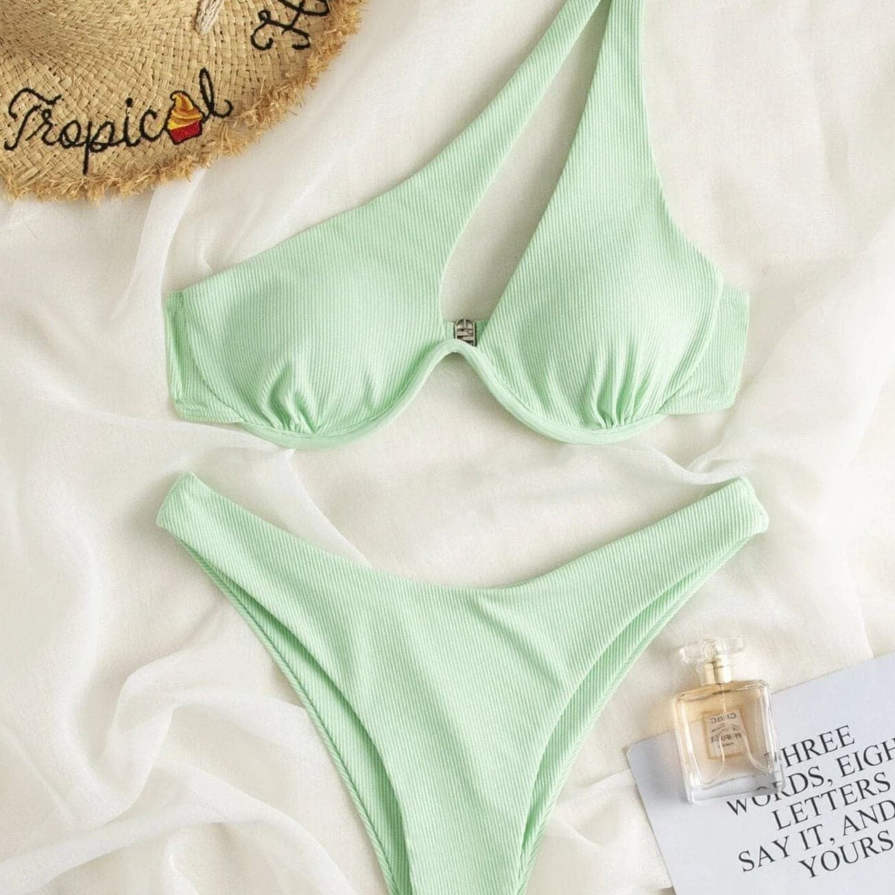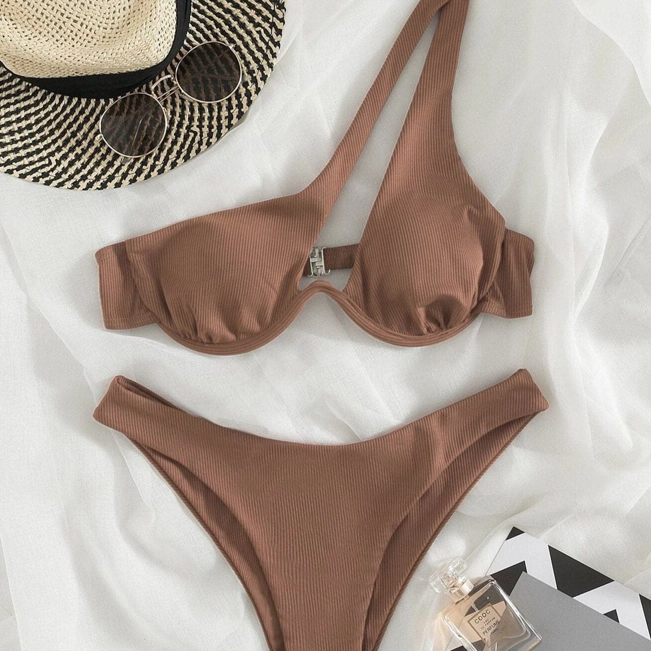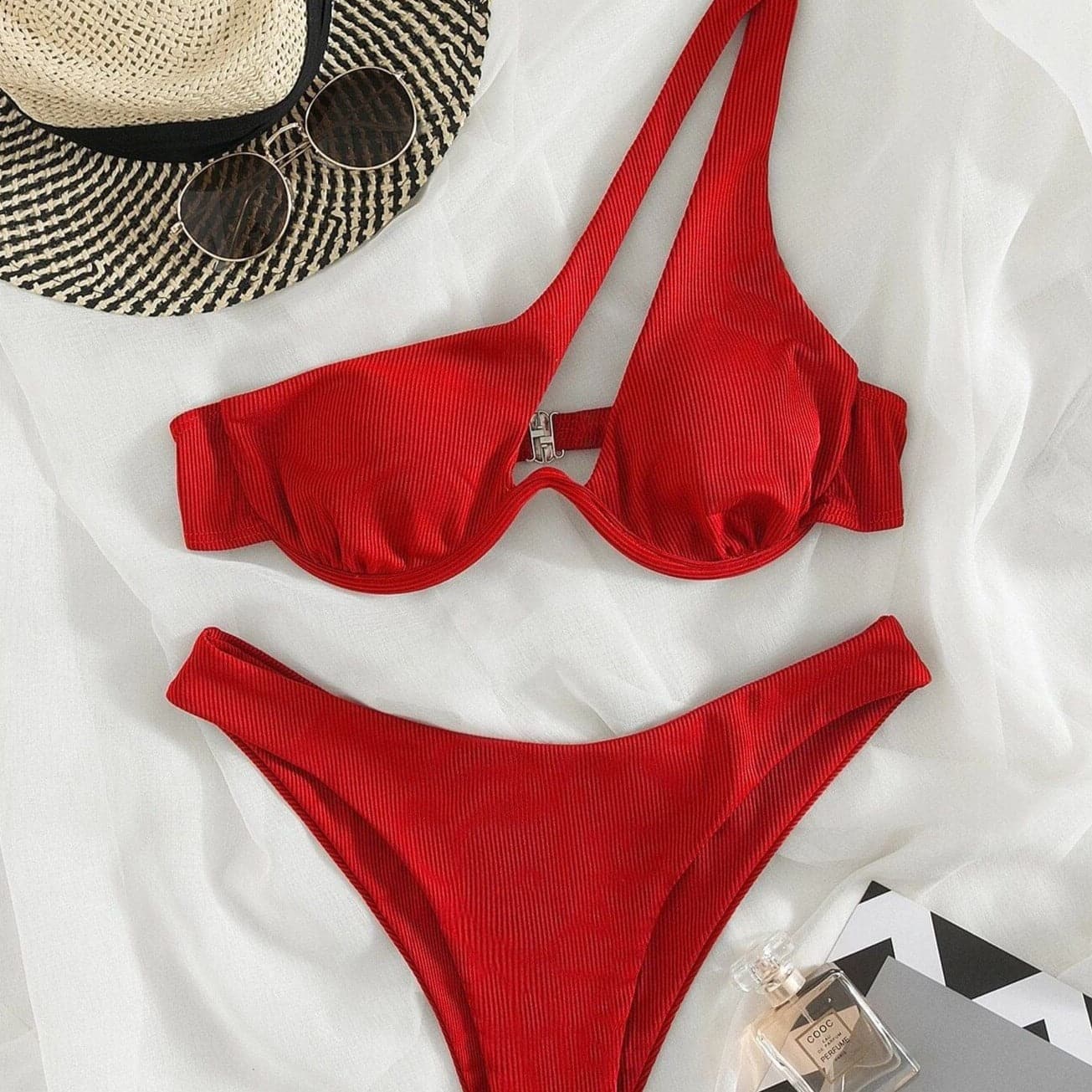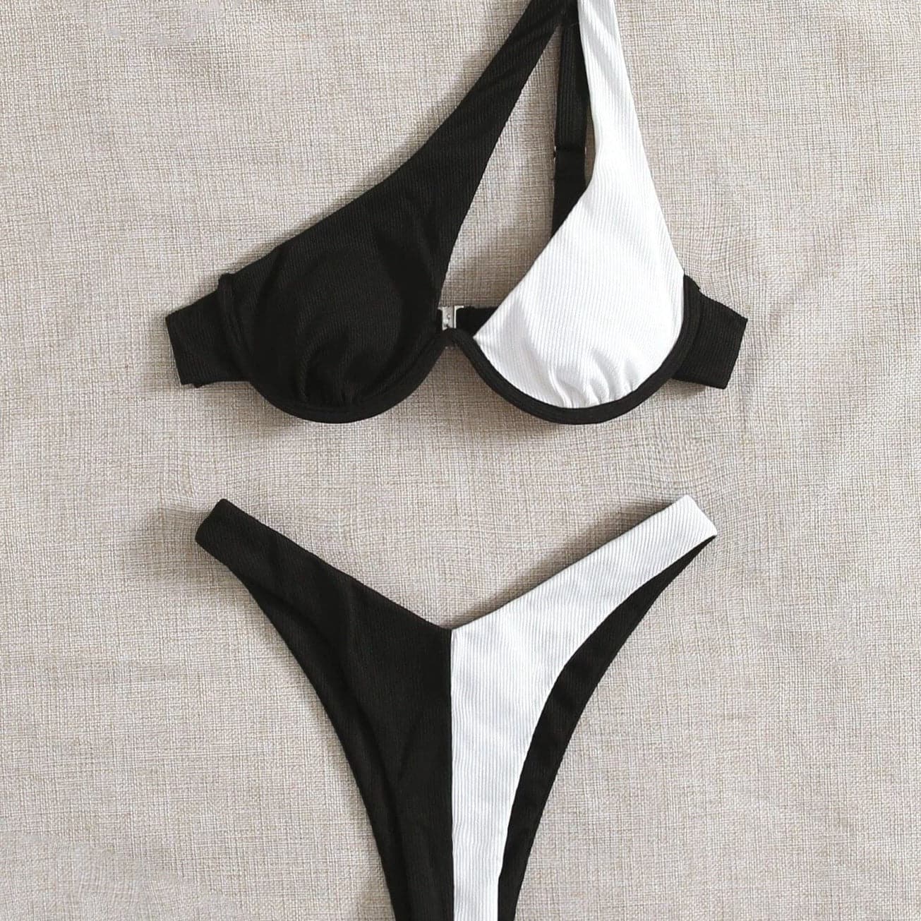 Oryginalny i przyciągający Asymetryczny Strój Dwuczęściowy  może być Twój. Zwróć uwagę na jego niebanalne połączenia kolorystyczne oraz wzory. Możesz być pewna, że w tym stroju nie przejdziesz plażą niezauważona. Ponadto odpowiednio wyprofilowane miseczki, rewelacyjnie podkreślają i lekko unoszą biust. W naszej ofercie znajdziesz duży wybór wzorów i kolorów tego modelu. Nie musisz kończyć zakupów tylko na jednym!